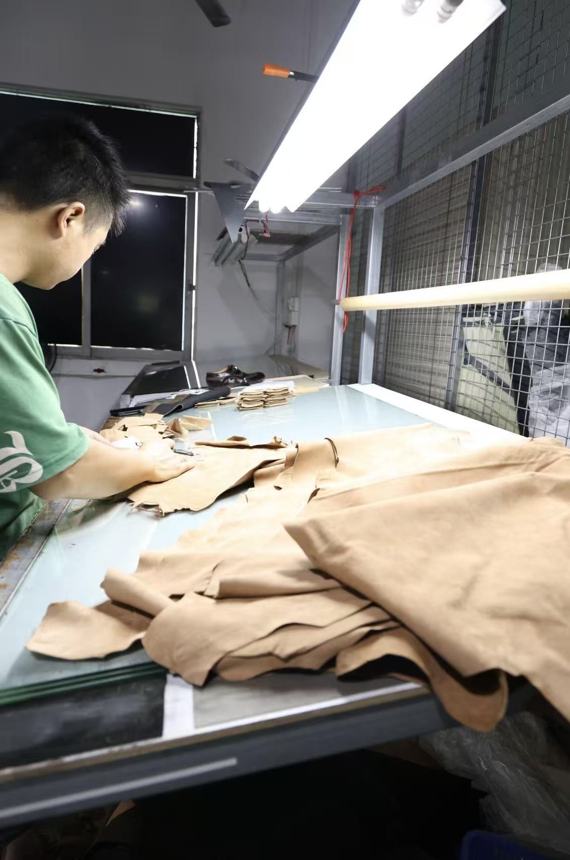 The journey begins in our design studio and material warehouse. Here, designers' ideas are transformed into precise digital models and physical samples. Meanwhile, experienced craftsmen inspect and cut pre-selected premium leather. Through precise computer typesetting, we maximize the use of every inch of leather, ensuring quality while upholding our sustainability commitment.